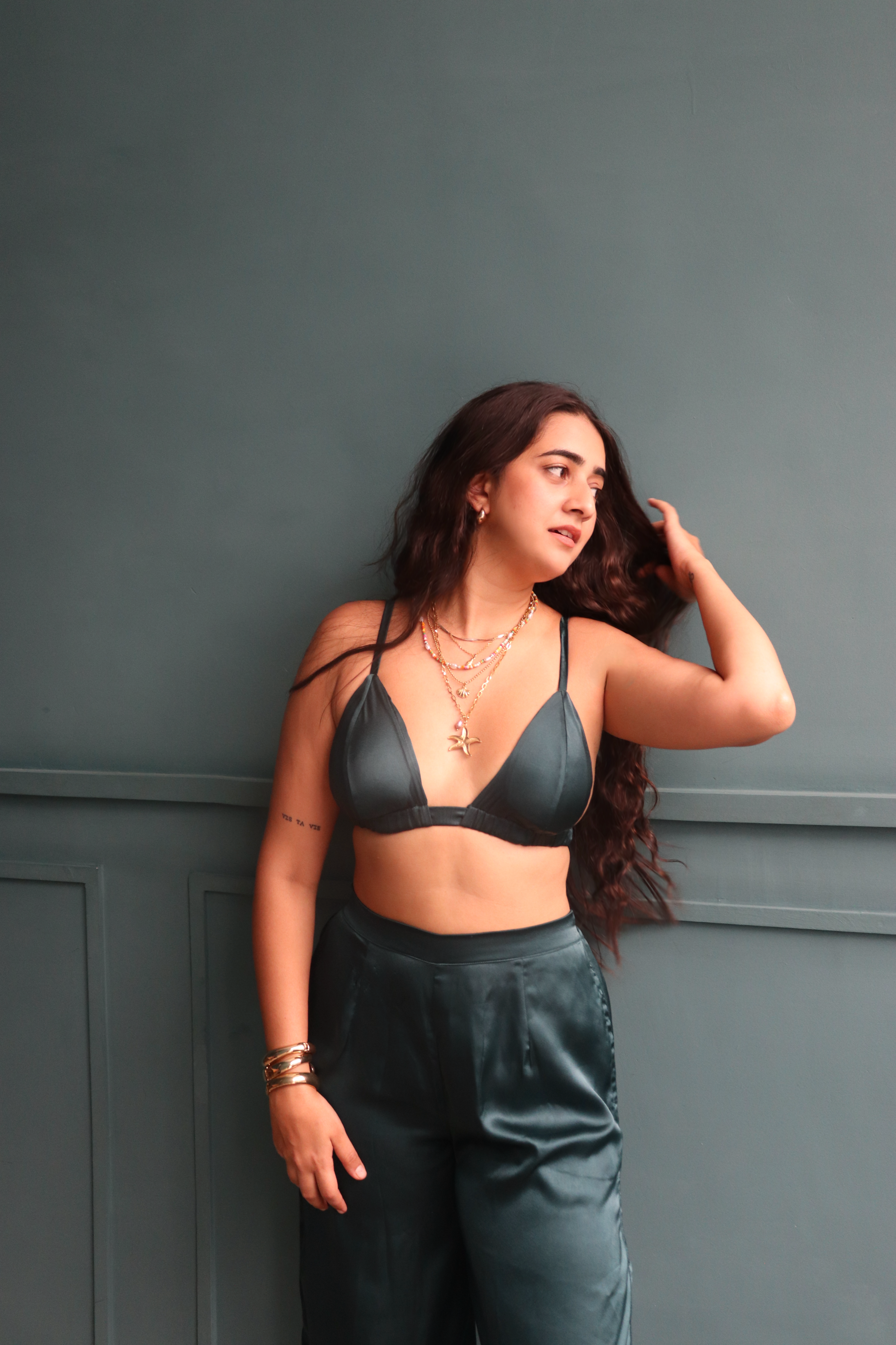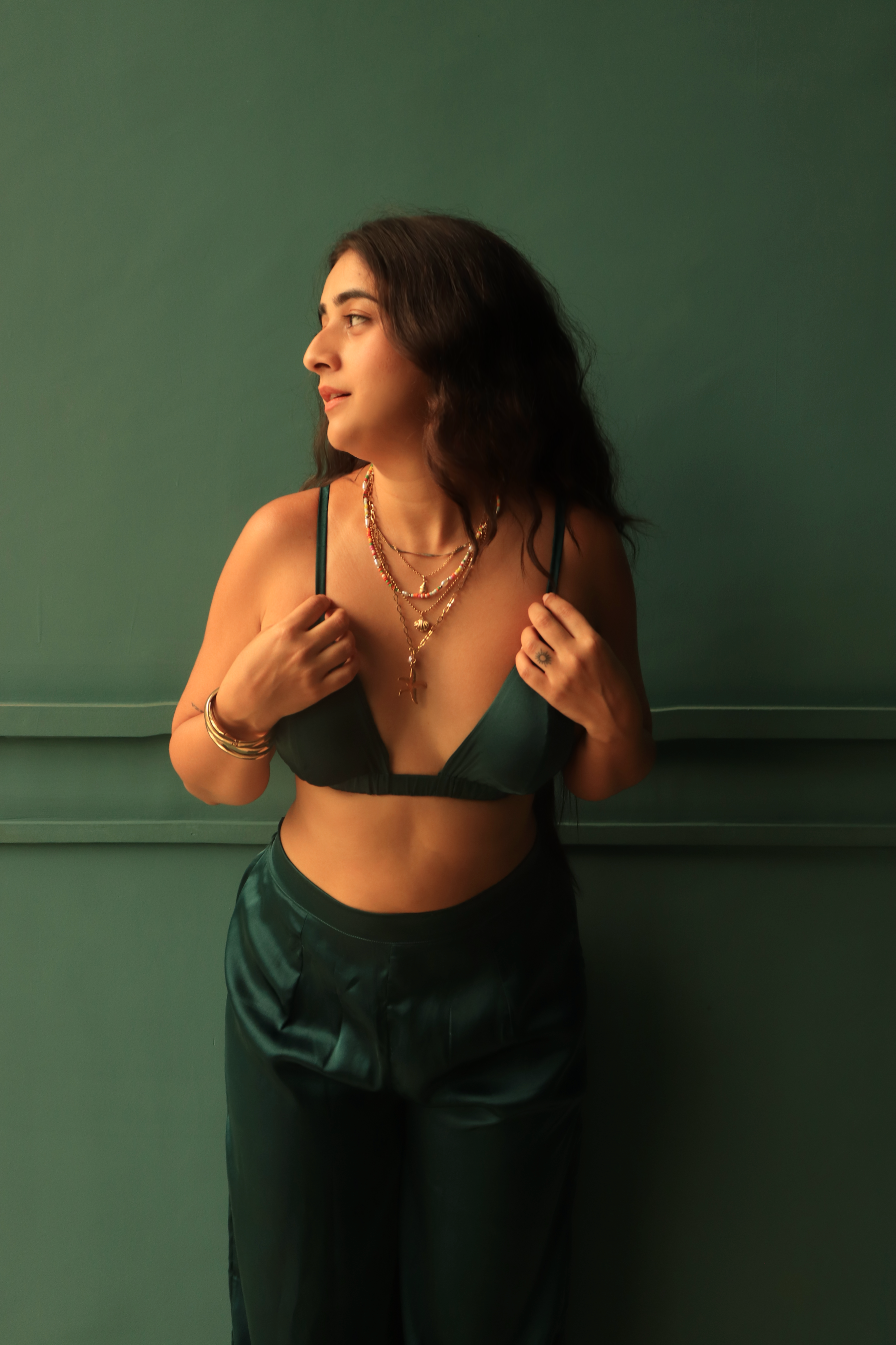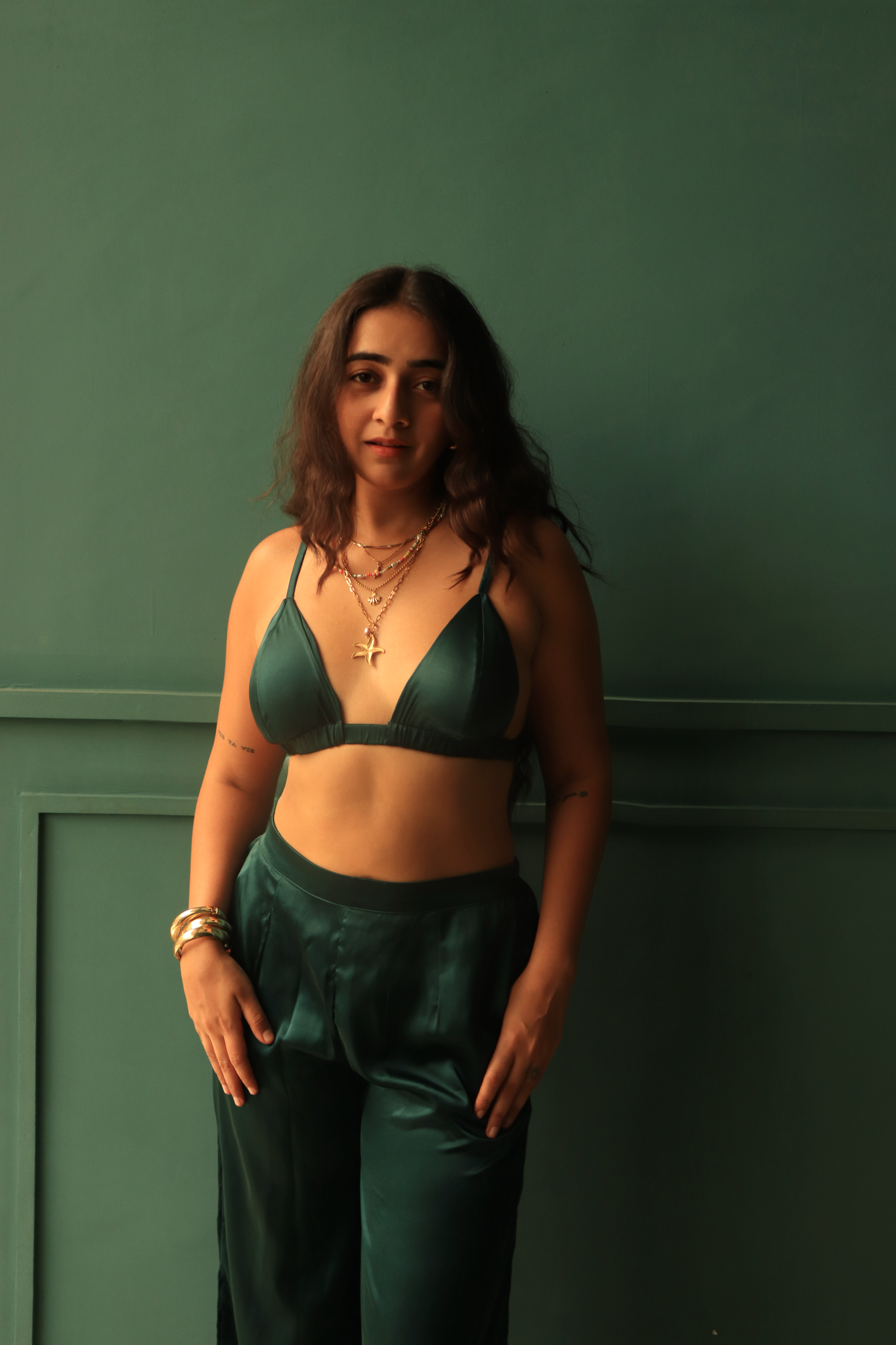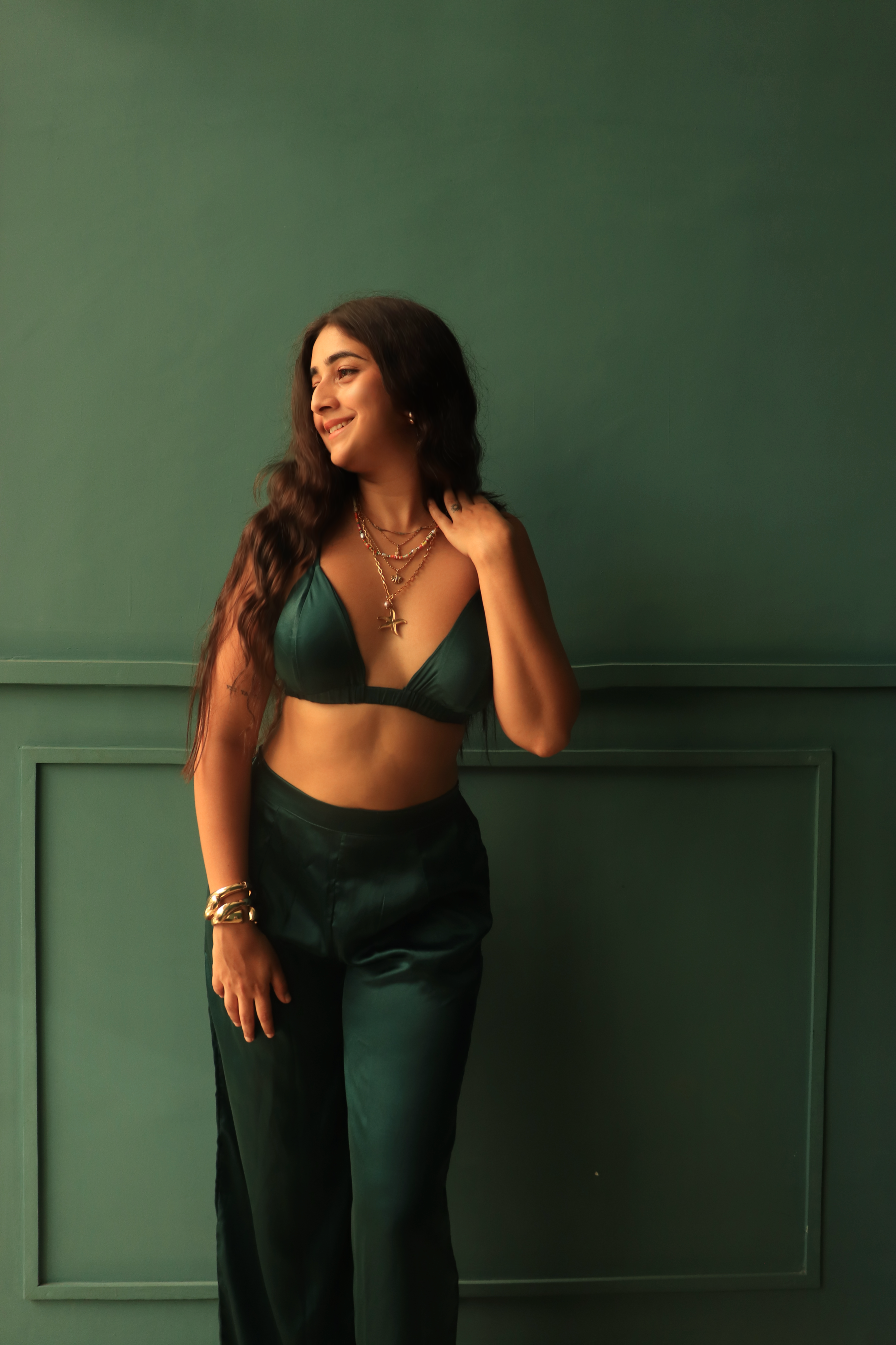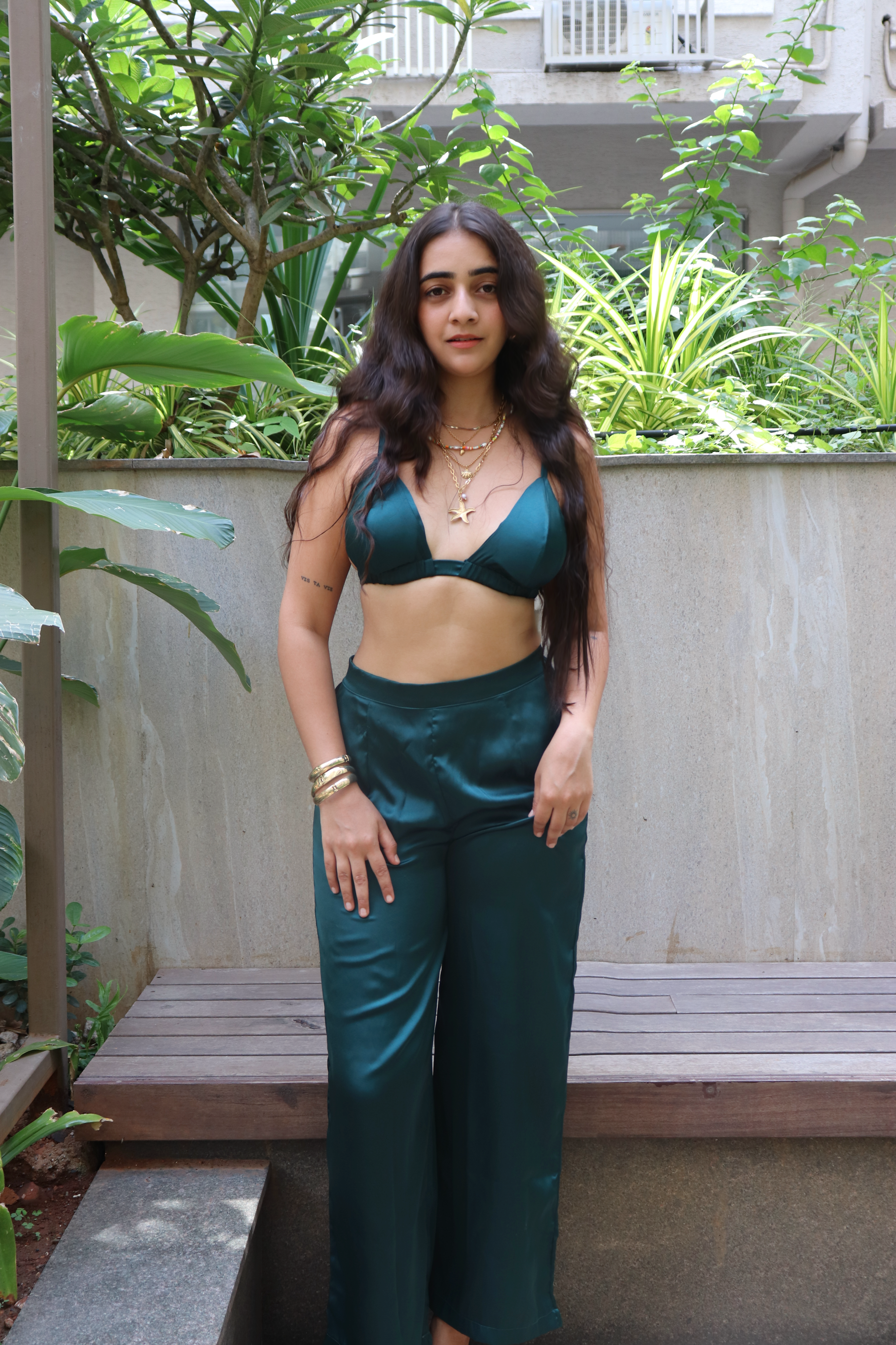 Step into the season with effortless elegance in the Green Sunset Beachwear Co-ord Set. Crafted from lustrous satin with a 100% polyester composition, this set includes a sultry triangle bralette and relaxed wide-leg pants in a rich emerald green shade. The smooth finish and fluid silhouette make it a standout choice for tropical getaways and breezy summer days.