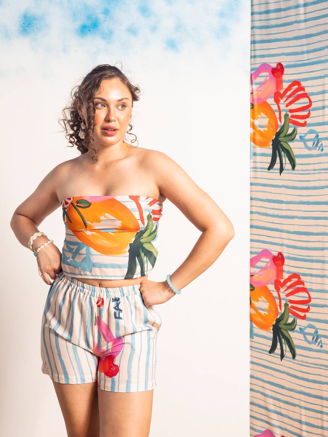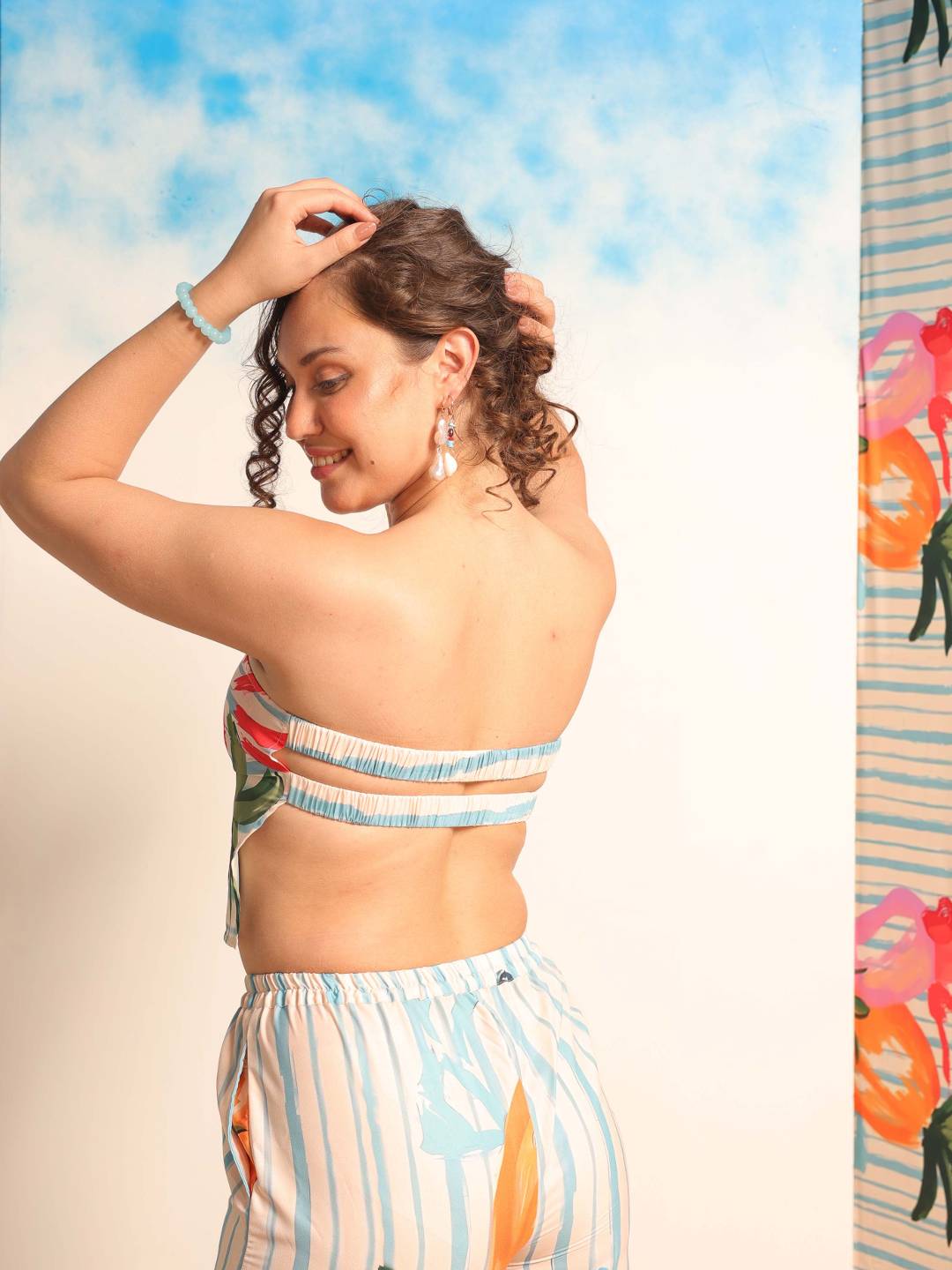 Flattering Design: The vibrant floral print top boasts a strapless bandeau style that complements all body types.